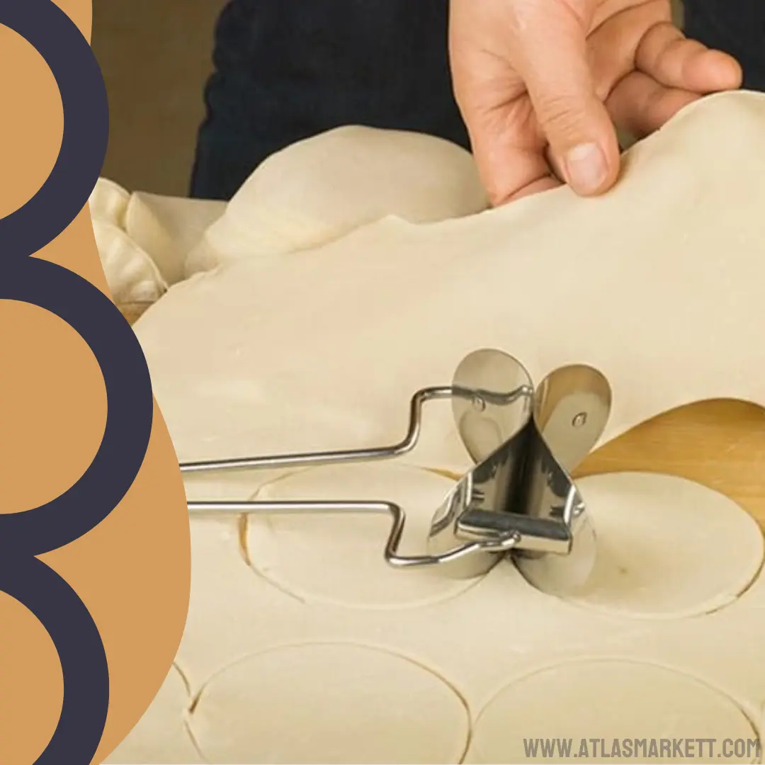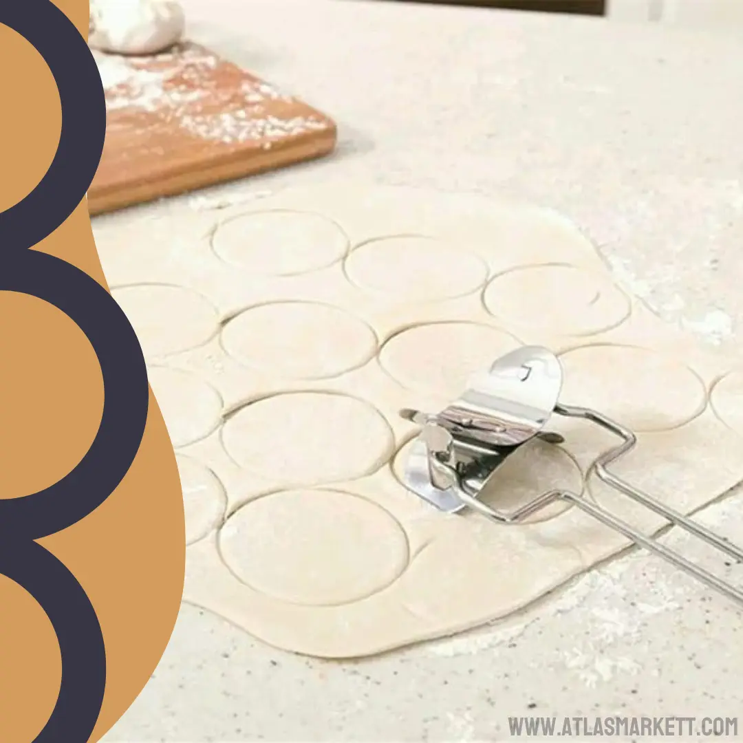 Make your baking and cooking easier with the 360° Rotating Stainless Steel Puri Cutter Roller, a versatile kitchen tool designed for perfect results every time. This manual puri cutter roller is ideal for creating dumplings, pies, empanadas, ravioli, pot stickers, pierogi, pastries, breads, cookies, biscuits, tarts, and mini pizzas. Its stainless steel blades cut precise circles from dough in a single smooth motion, saving time and effort in your kitchen.
