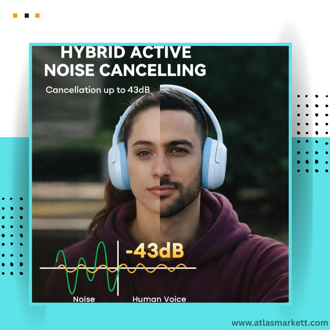 - 【-43dB Hybrid Active Noise Cancellation】With the hybrid ANC technology and enclosed design, the headphones will automatically identify ambient noise and transmit the corrected signals. Allows you to enjoy quiet music time in your commute, office, home, or travel.