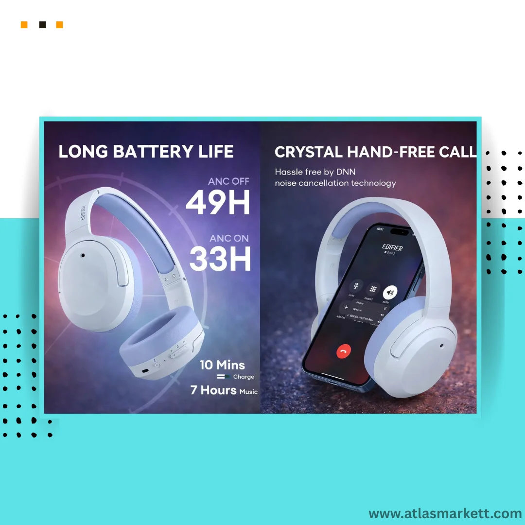 - 【49-Hour Playback Time】A full charge will give you 49 hours of playback time while a quick 10-minute fast charge will give you 7 hours of non-stop use. Edifier Hybrid Active Noise Cancelling Wireless Headphones