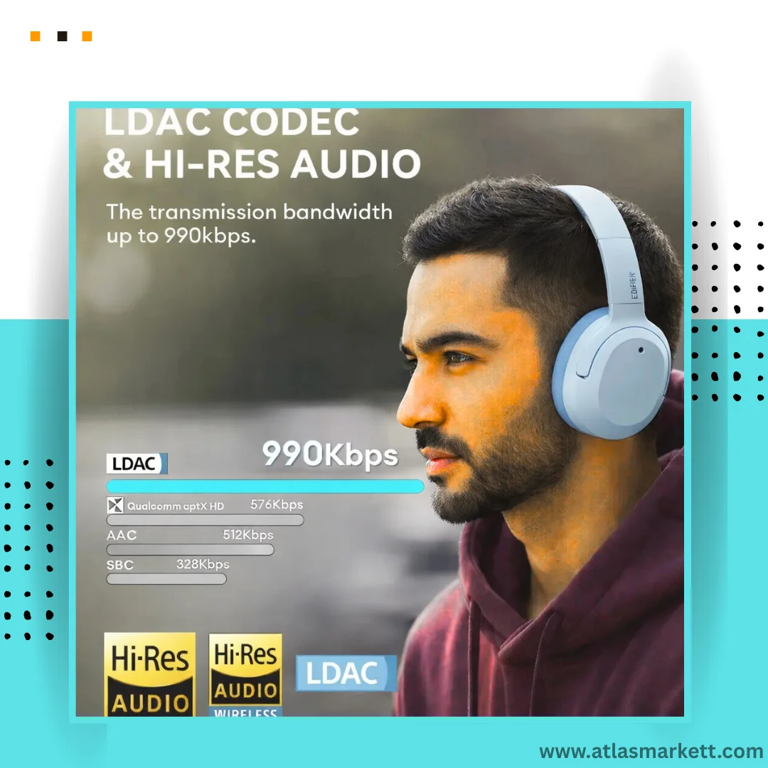 LDAC Codec: The LDAC technology ensures high-resolution audio streaming over Bluetooth, allowing you to enjoy your music with exceptional clarity and detail, maintaining the integrity of your audio source.