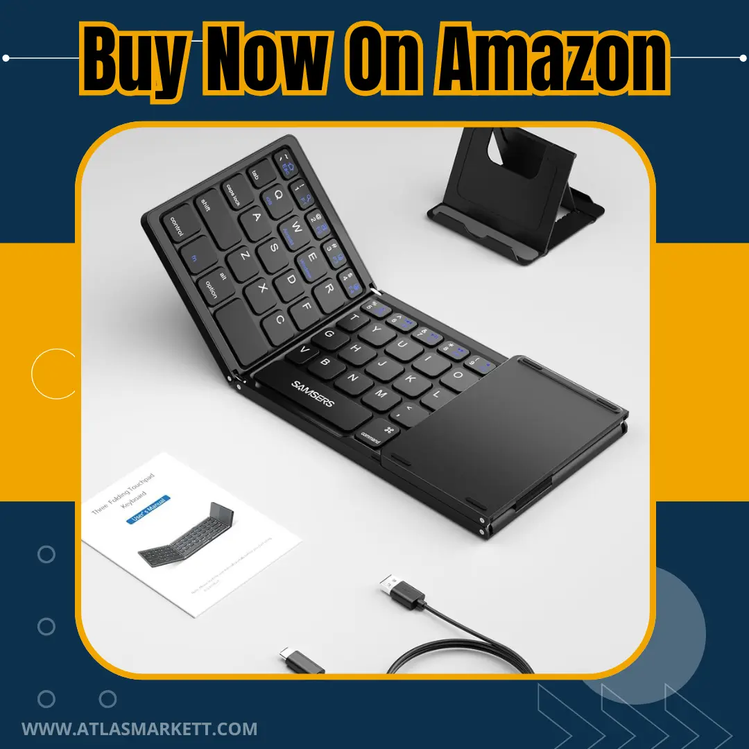 Folding Bluetooth Keyboard with Touchpad & Phone Stand Holder: Extremely thin design of this portable wireless keyboard with holder allows you to fold it up and slip it into your pocket or bag without taking up space.