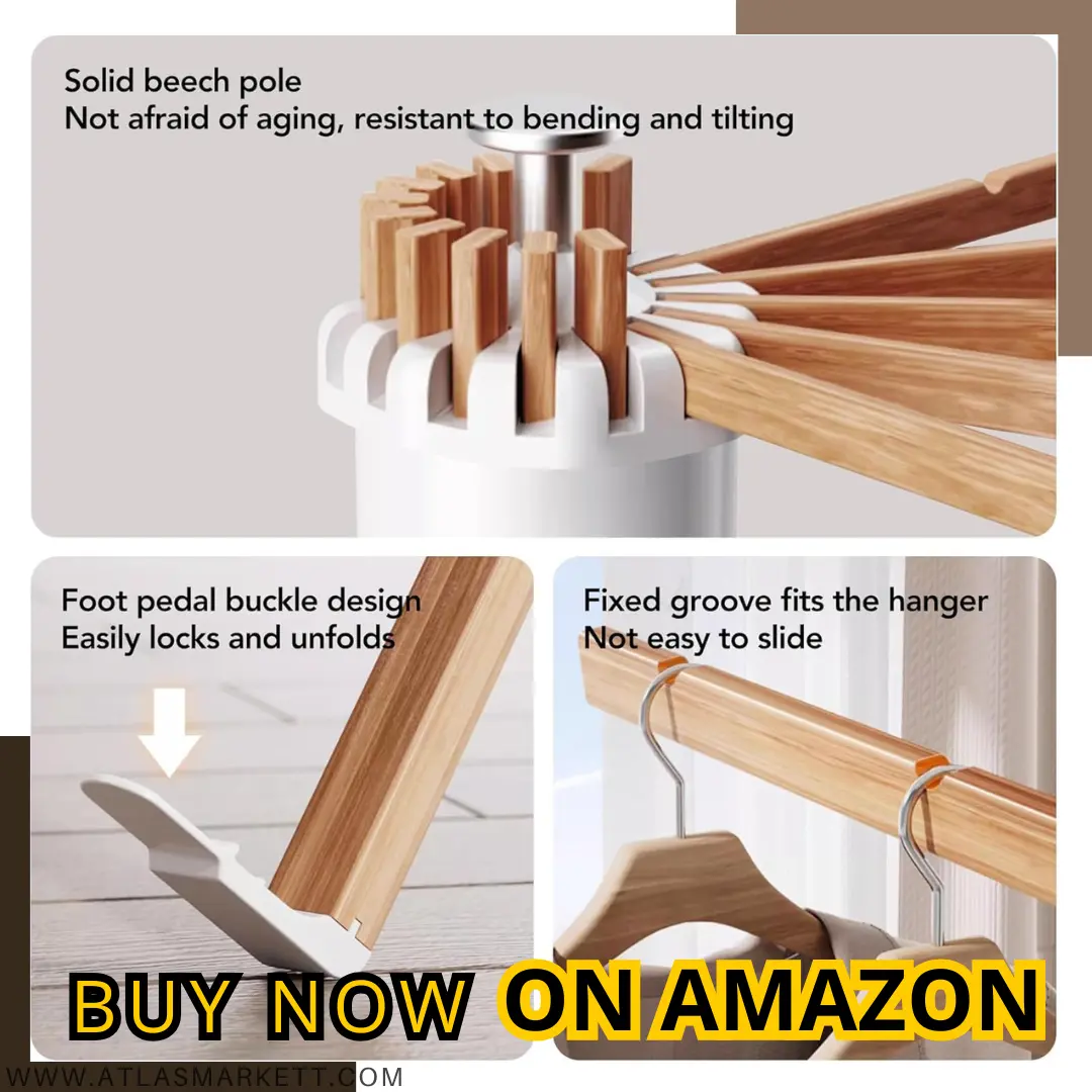 ALL WEATHER RESISTANT: Manufactured with superior-grade beech wood and engineered HDPE parts to offer excellent rust and corrosion resistance. Perfect for use in every climate and season. Equipped with a strong tripod base and anti-slip feet to maintain maximum stability, even when filled to capacity. wooden clothes drying rack