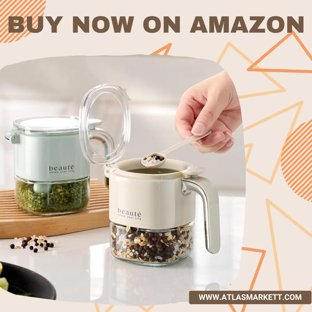 Organize your kitchen with this Reusable Glass Spice Jar, Farmhouse Kitchen Storage Organizer. Durable glass with airtight silicone rings keeps spices fresh, while the lid and spoon add everyday convenience for sugar, salt, pepper, and seasonings.