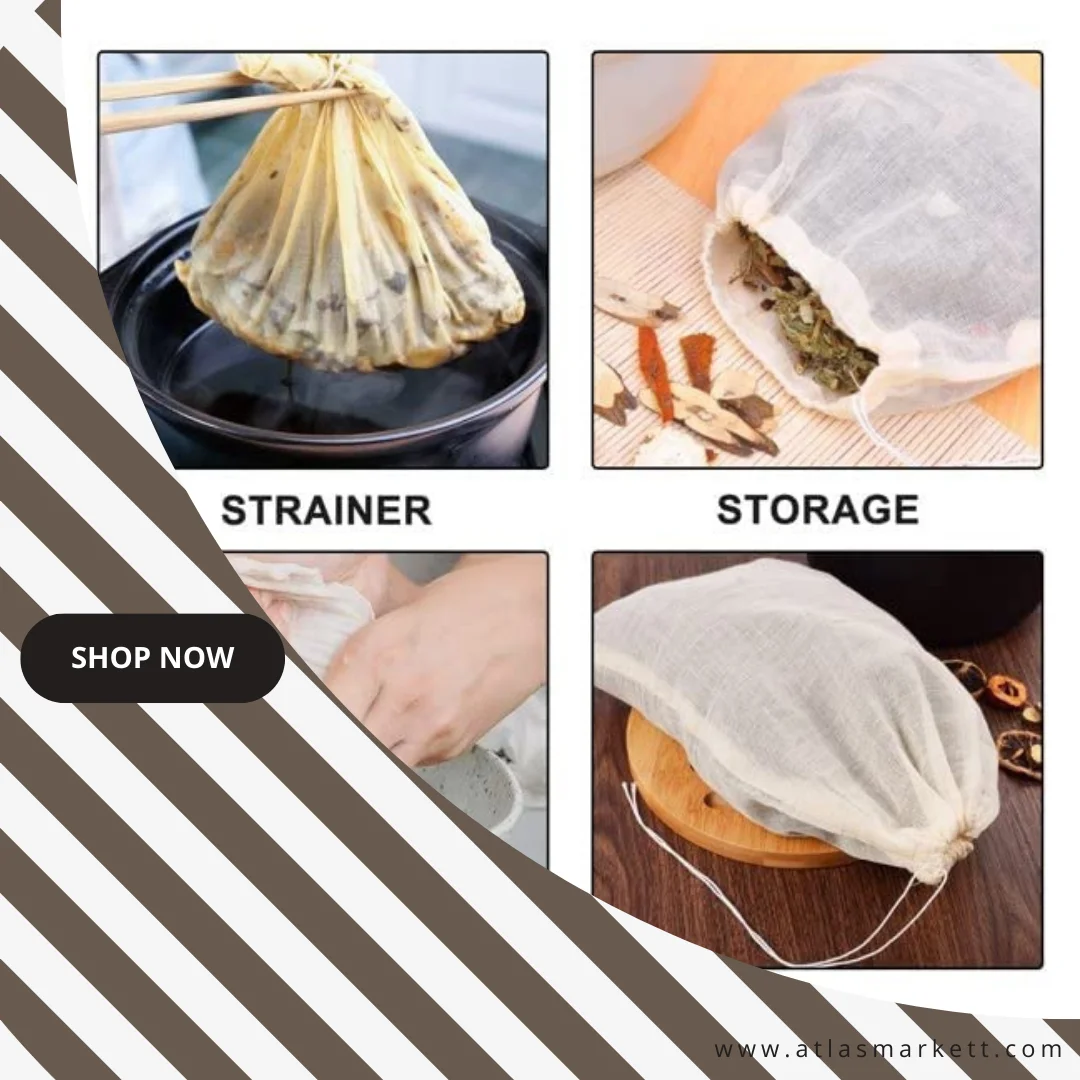 Muslin cloth for kitchen now made simple with unbleached cotton cheese cloth bags, completely safe, reusable, and eco-friendly as they are 100% biodegradable.