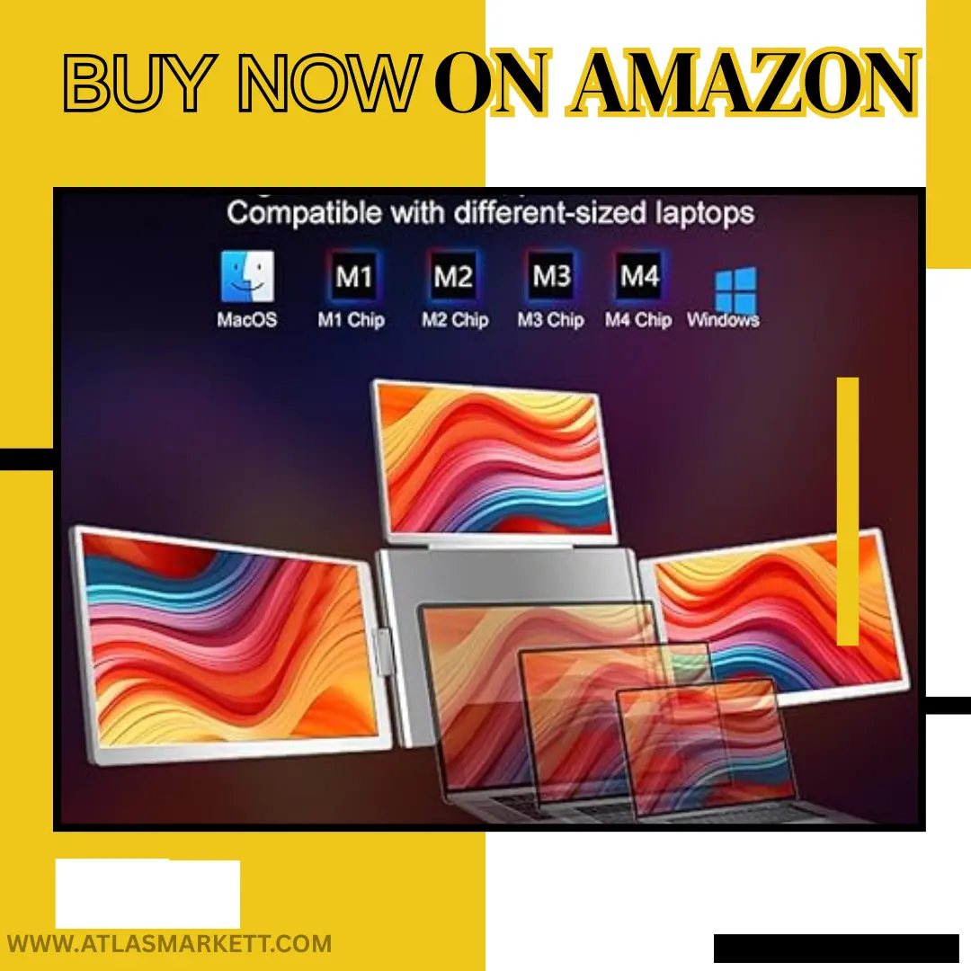 OUTSTANDING VISUALS: Experience the world’s first triple giant-screen 16″ Full HD portable laptop screen extender, designed for 12–18.5 inch laptops. This triple monitor laptop extender delivers 1920x1200P resolution, 60Hz refresh rate, and 300nit brightness. It features 72% NTSC (100% sRGB) and 360° IPS wide viewing angles. Enjoy vibrant colors, sharp accuracy, and premium display quality comparable to high-end laptops.