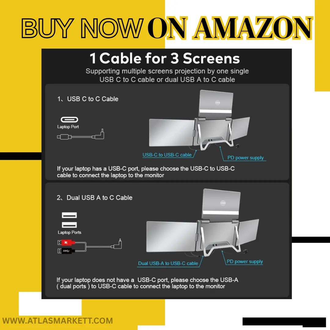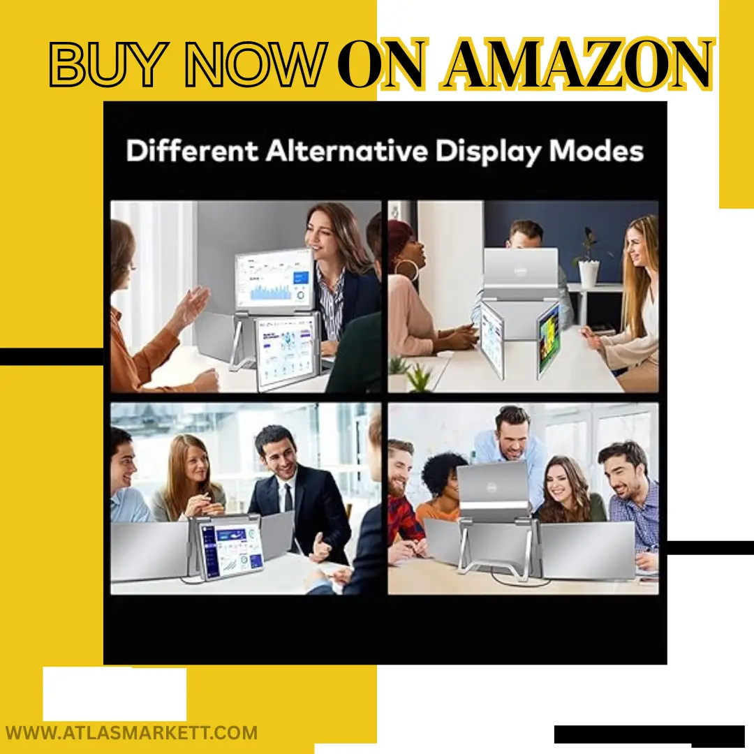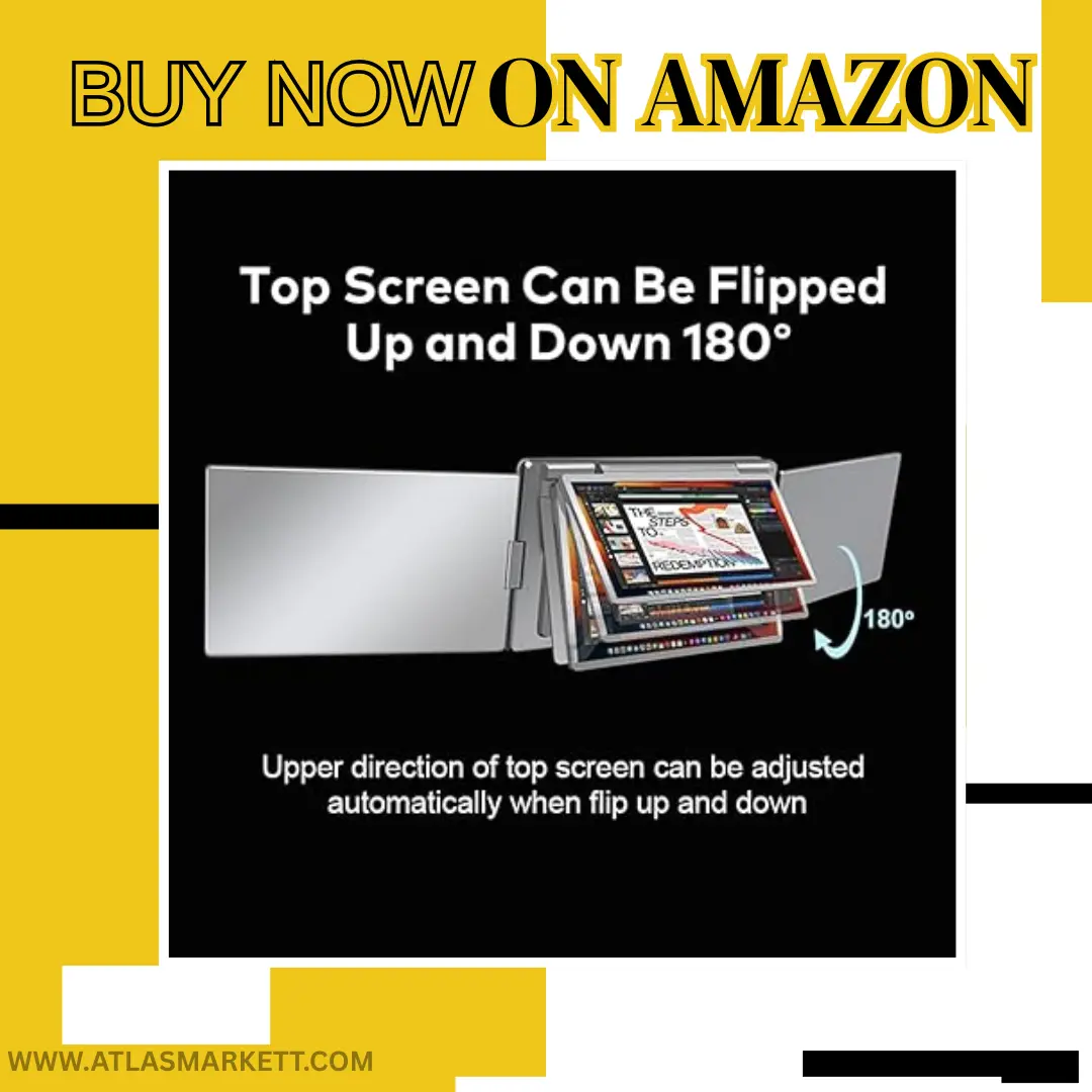 300% PRODUCTIVITY: Maximize efficiency with different display modes. With this portable laptop screen extender, multitasking becomes seamless—no more constant switching between apps and pages. Boost productivity up to 300% while enjoying triple screens that fold 360° (left & right) and 180° (top). Perfect for stock analysis, video editing, or streaming, the portable triple monitor for laptop design offers flexible viewing anytime.