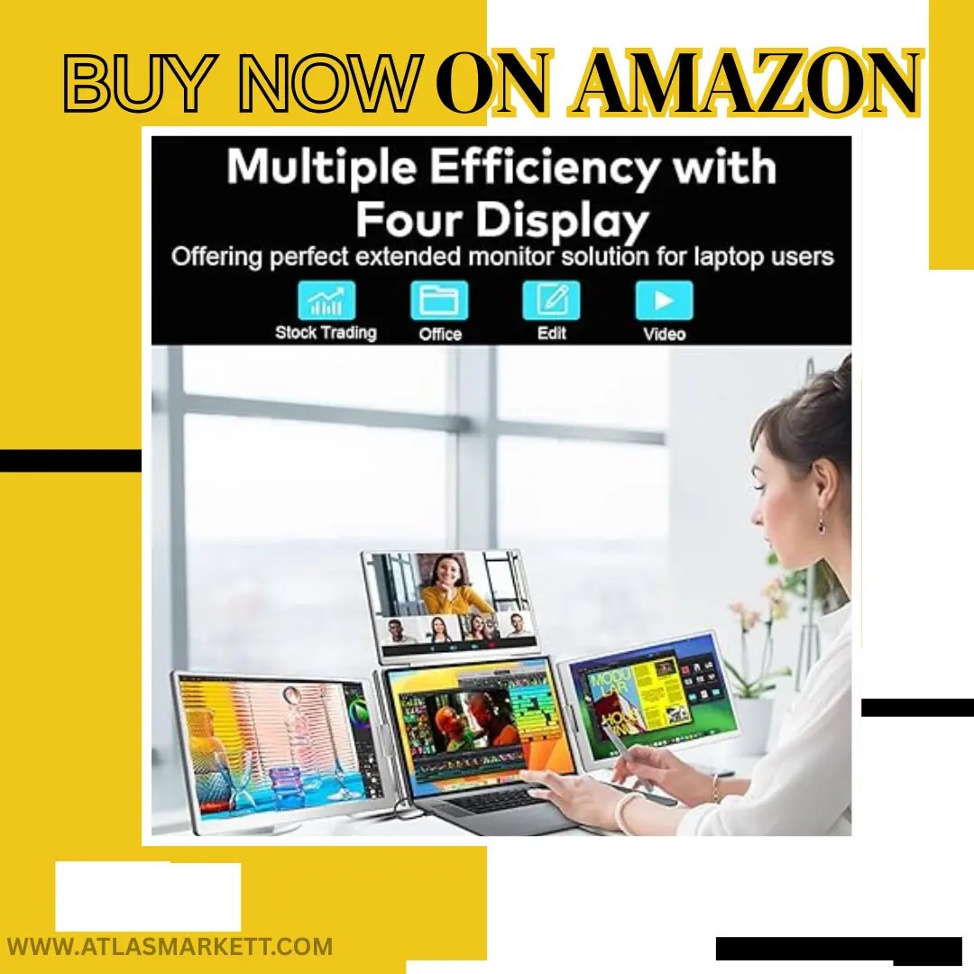 LET YOUR IMAGINATION RUN WILD: Go beyond single-screen setups with this innovative triple display. The 16″ portable triple monitor lets you create a mobile workstation for academic research, travel jobs, code writing, design, stock trading, or video conferencing. Ideal for students, professionals, employees, entrepreneurs, and creatives who need ultimate flexibility in a multi screen laptop setup.