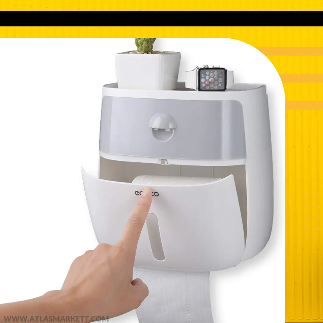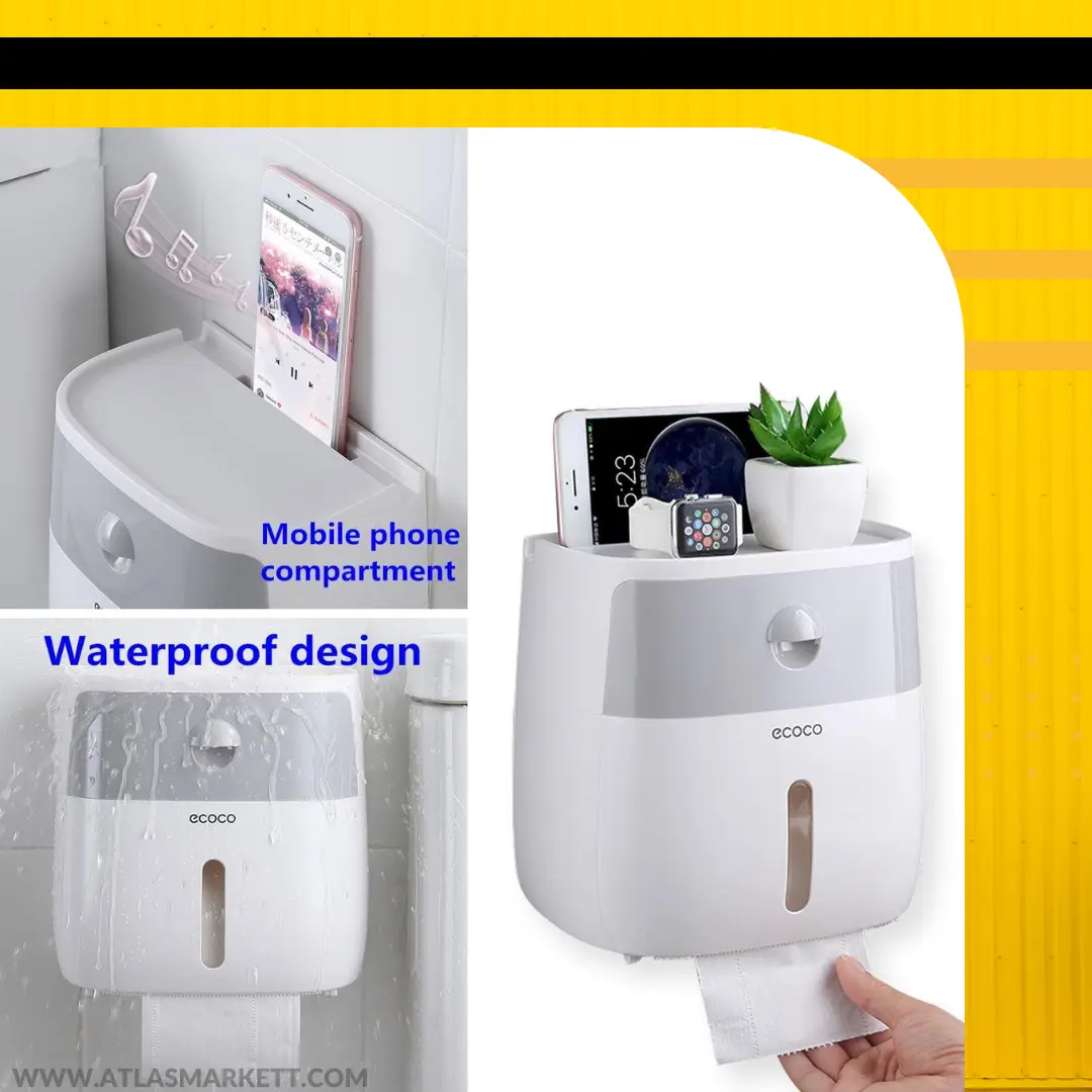 Upgrade your bathroom with this waterproof toilet roll holder with cover & storage box, designed to combine modern style with everyday functionality. Its compact, wall-mounted design makes it an excellent space-saving solution while adding a touch of elegance to your bathroom décor.